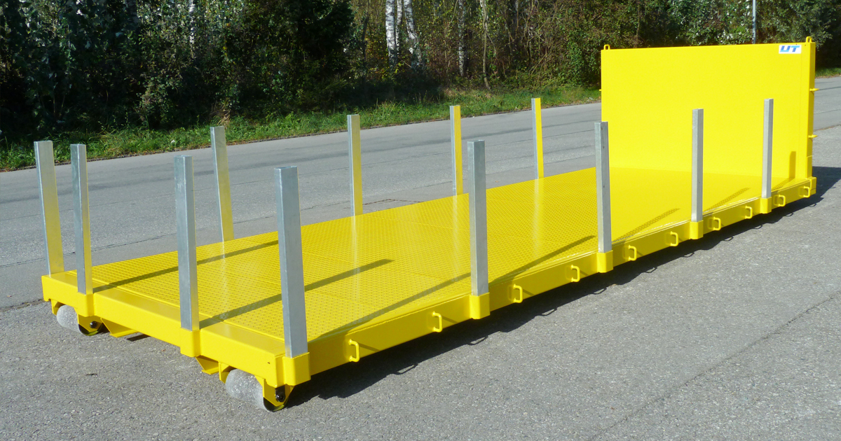 Für den sicheren Transport von Baumaterial sowie Maschinen- und Geräten. Die robusten Abrollpaletten von UT gibt es wahlweise mit Böden aus Stahllupenblech, Tannenholz oder Hartholz.