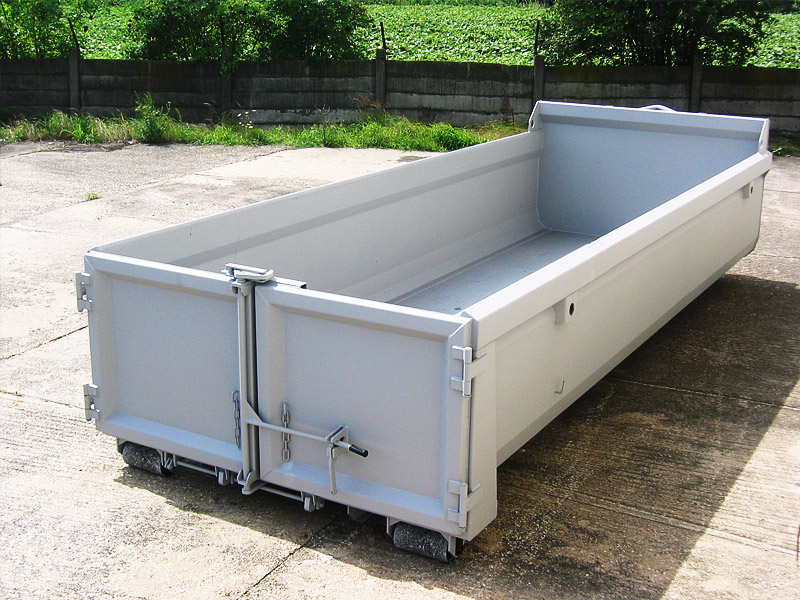 Die COBRA-Container sind für den Transport von Schüttgutmaterial aus dem Baustellenbereich bestimmt. Die Modelle werden in verschiedenen Stahlqualitäten (bis Hardox 450) hergestellt und lassen sich mit Auffahrrampe, Flügeltüre oder Pendelladen versehen.