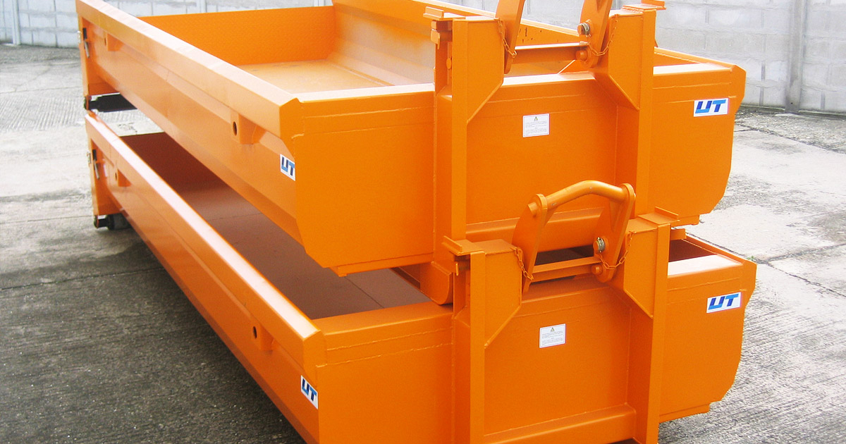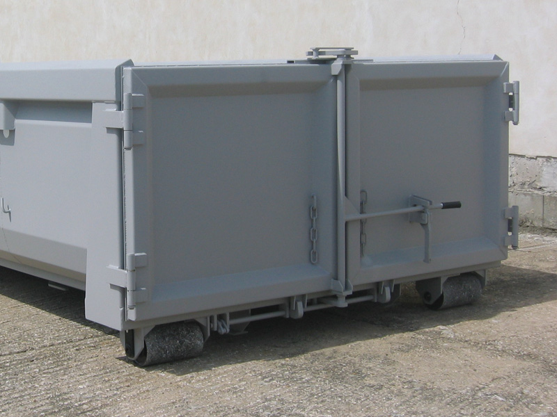 Diese COBRA-Container sind stapelbar und damit platzsparend. Hergestellt werden sie in verschiedenen Stahlqualitäten (bis Hardox 450), ausstatten lassen sich diese Container für Abrollkipper mit Auffahrrampe oder Flügeltüren.