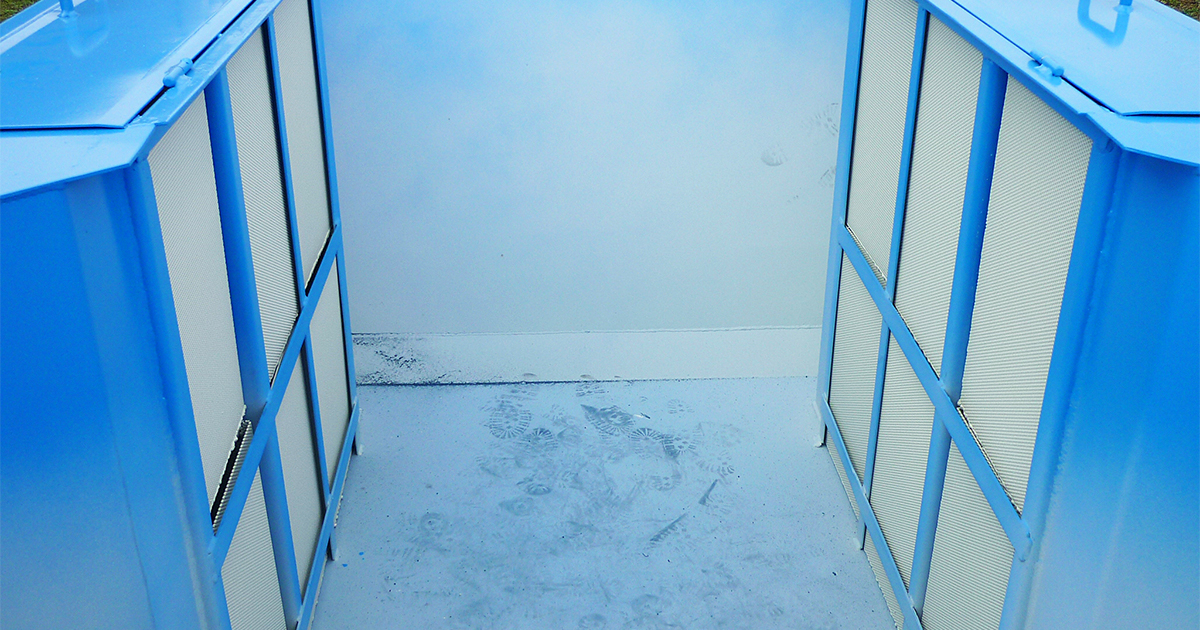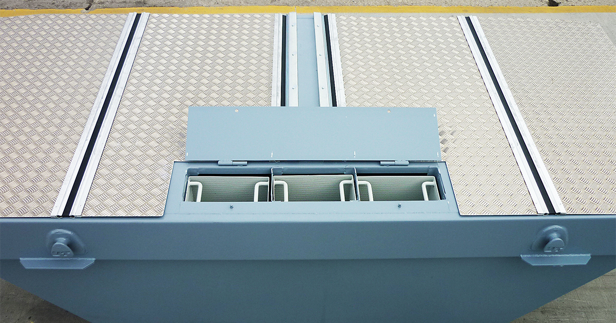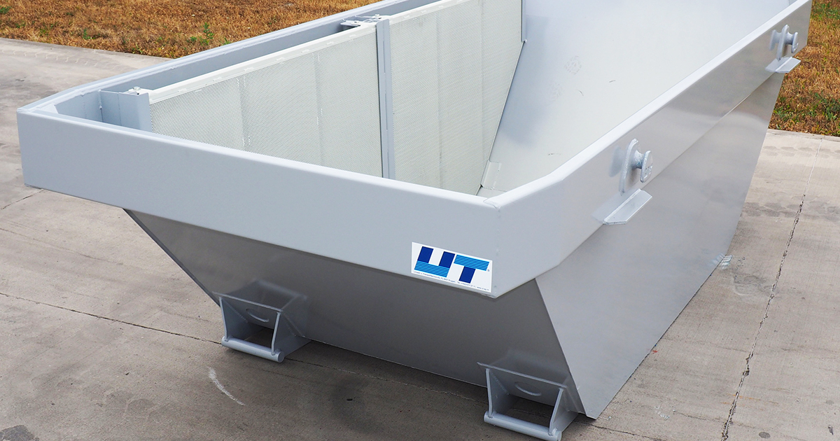 Die Spezielle: Die Entwässerungsmulde wird – beispielsweise bei Kläranlagen – zum Entwässern von organischen Materialien eingesetzt. Die eingesetzte Entwässerungseinrichtung besteht aus sechs Lochblechkörben und zwei Auslaufstutzen.