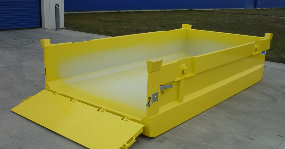 Bauschutt-Transporte auch bei beengten Platzverhältnissen bewerkstelligen? Kein Problem mit dem Flachcontainer von UT. Der Flachcontainer gibt es wahlweise mit einseitiger oder beidseitiger Auffahrrampe, oder auch mit Flügeltüren nur auf einer Seite des Containers.