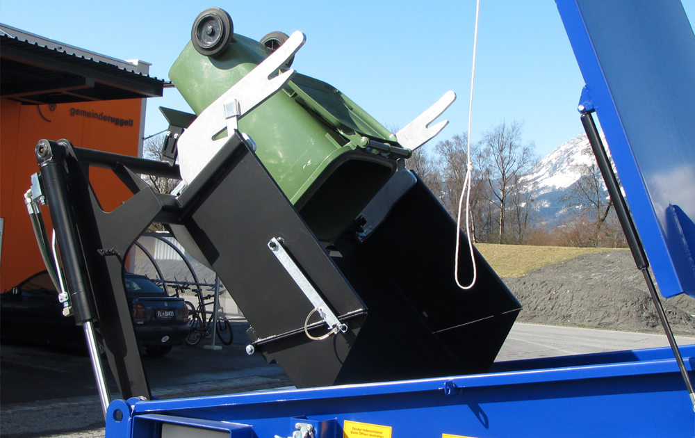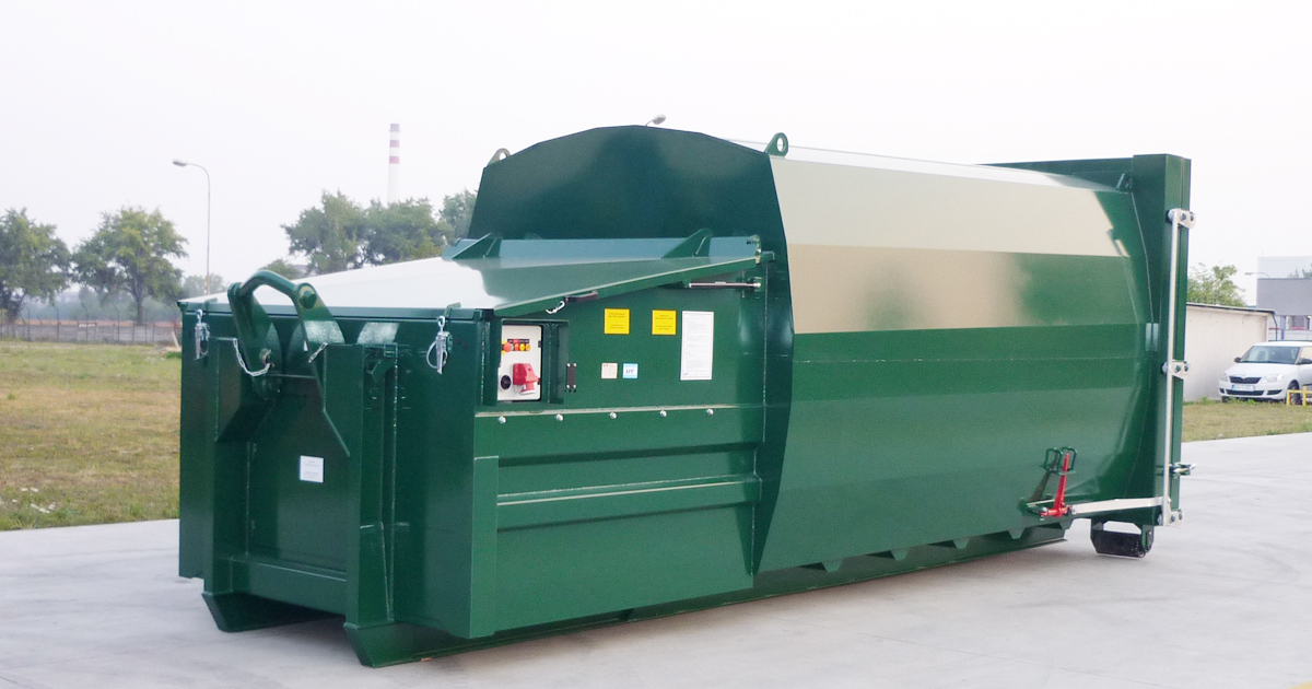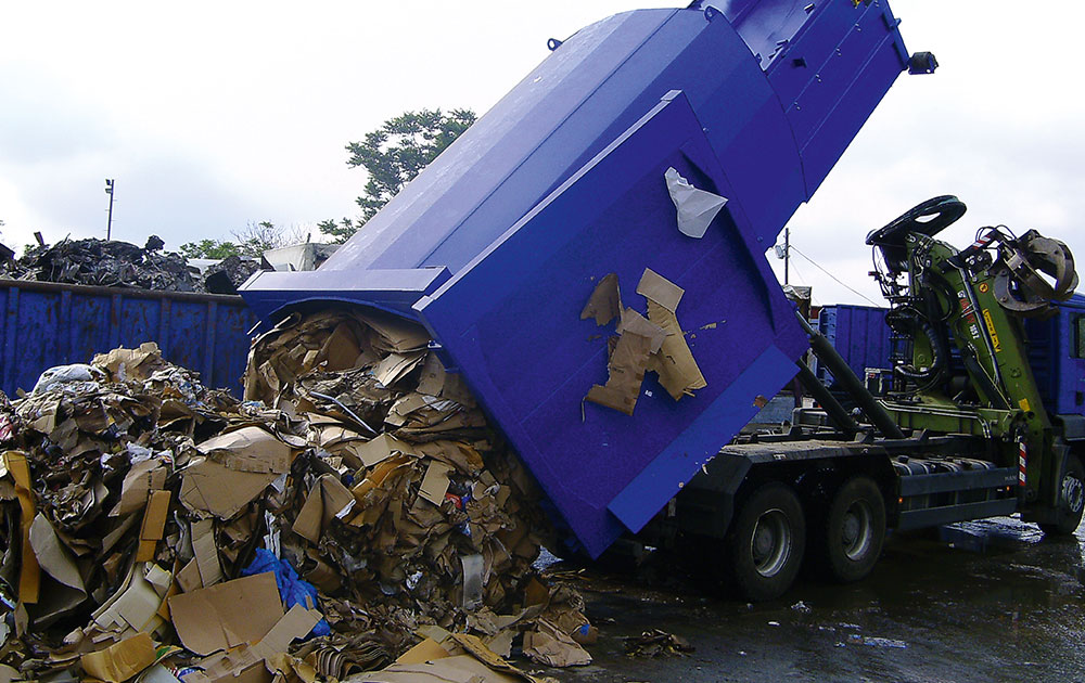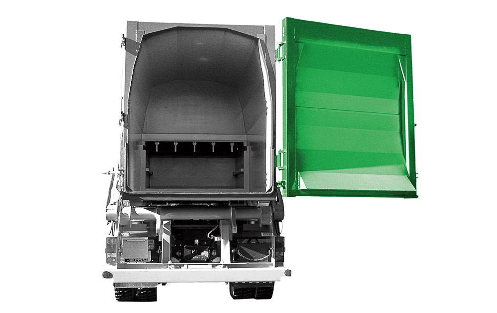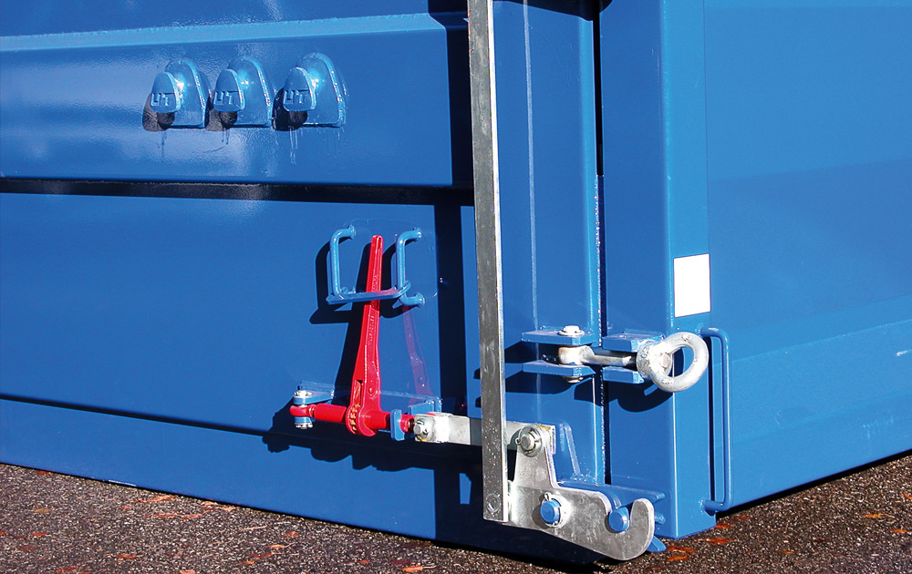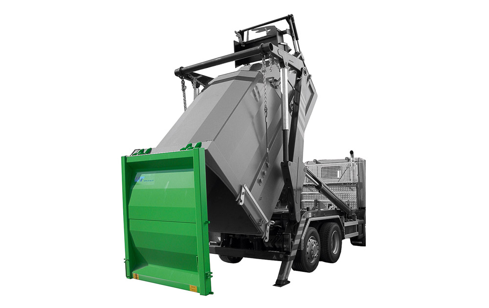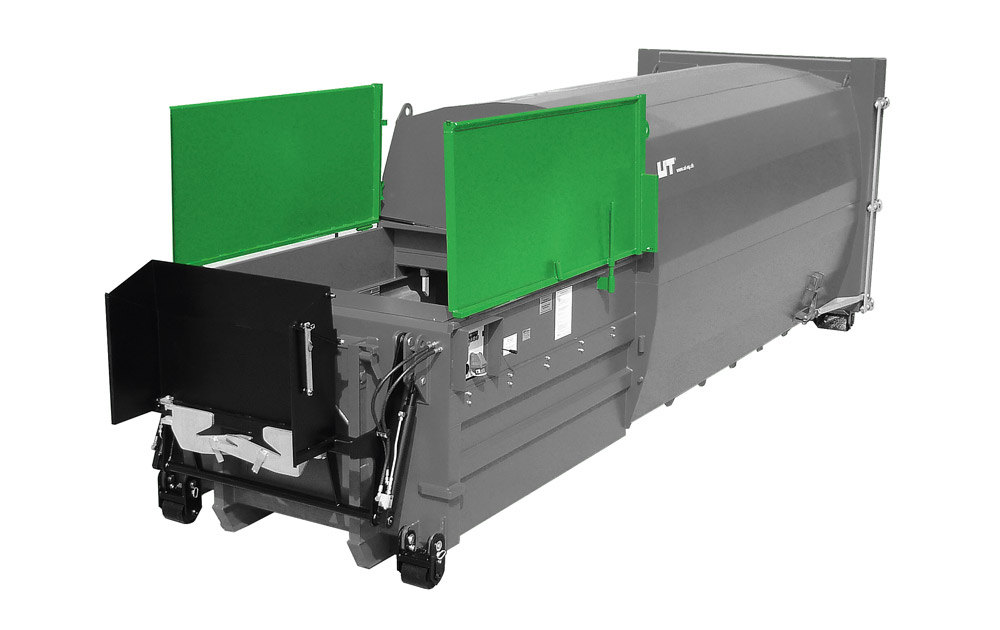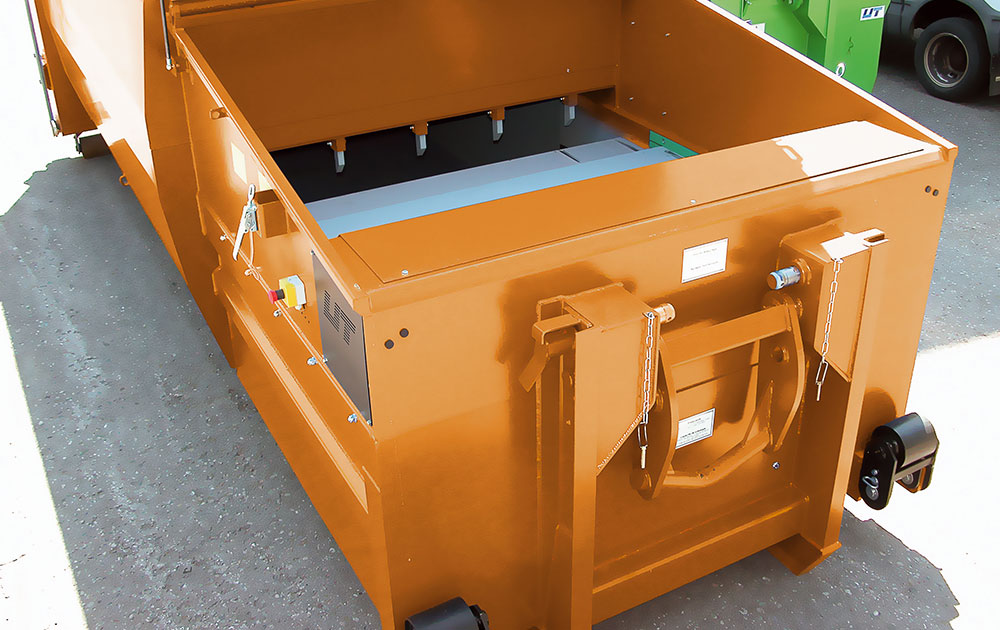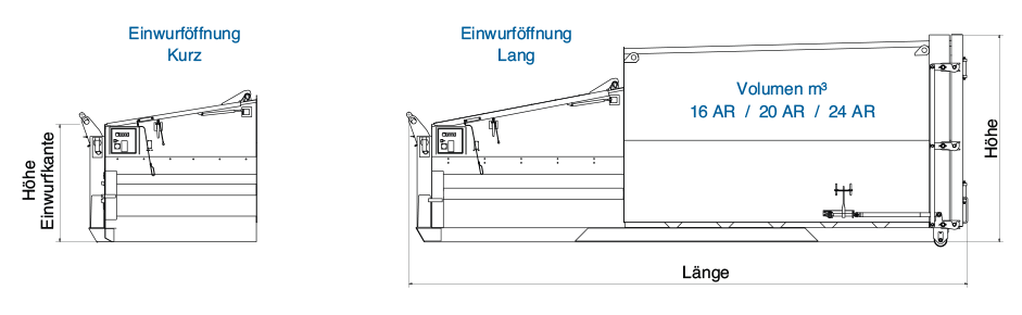 Der Presscontainer entspricht der DIN-Norm für Abrollkipper und kann mit einer kurzen oder langen Einwurfsöffnung von 1m bzw. 1.5m ausgestattet sein.