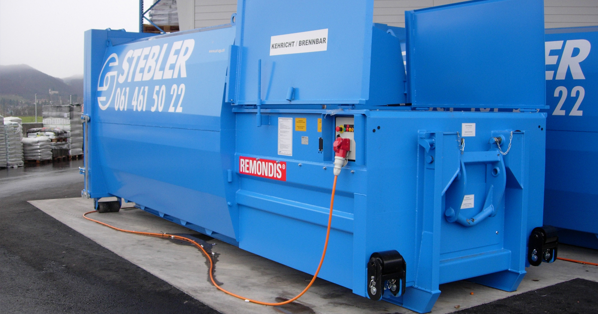 Der Presscontainer Abrollkipper eignet sich für grössere Entsorgungsvolumen von 16 bis 24m3 sowie längere und breitere Stellplätze von bis zu 6 – 8m Länge und ca. 2.6m Breite.