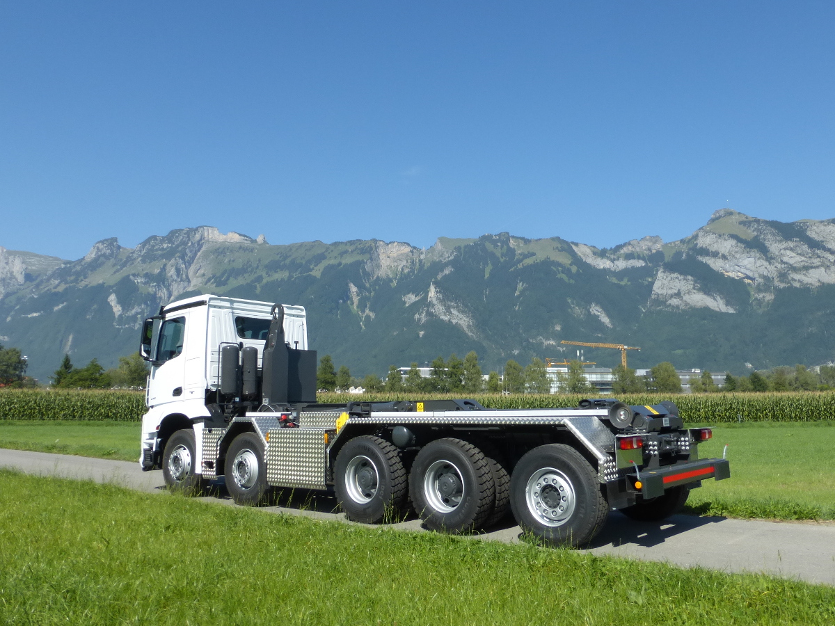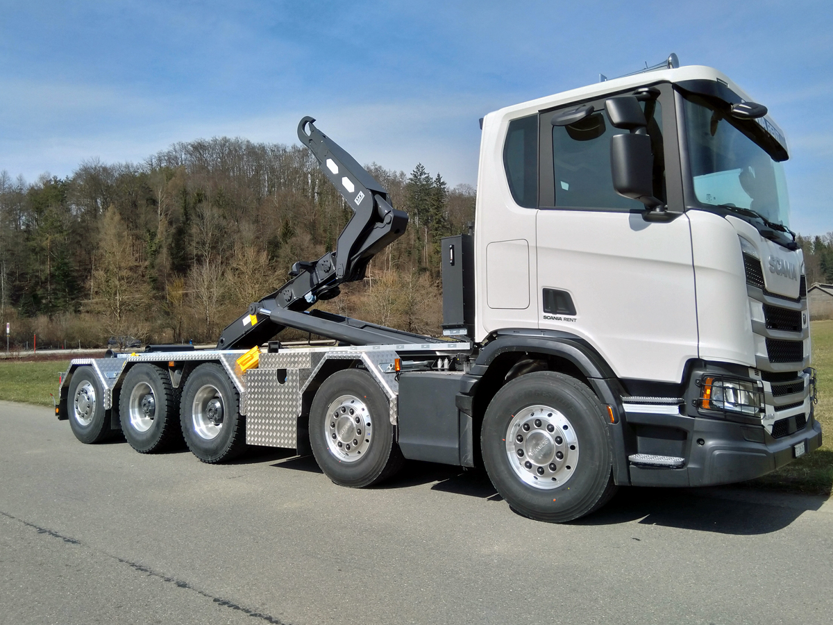 Bärenstark und total ausgefuchst: Wegen des tief liegenden Drehpunkts des Knickarms sind die Abrollkipper von UT extrem vielseitig. Das Fahrzeug kann jede Containergrösse auch bei voller Ladung zuverlässig und sicher aufladen und kippen. Unsere Kunden schätzen die leistungsstarken und flexiblen Einsatzmöglichkeiten auf Grossbaustellen und anspruchsvollen Entsorgungsfahrten.