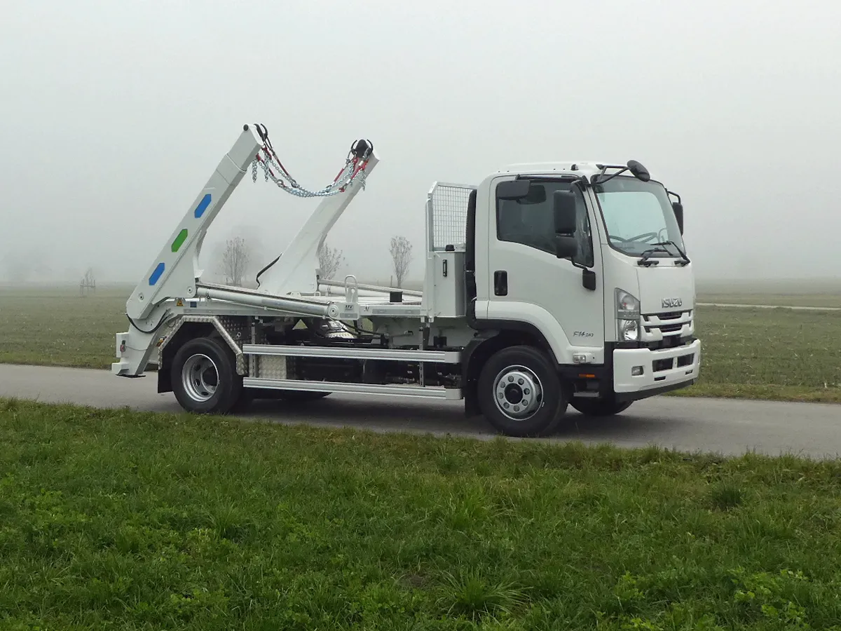 Der Wendige: Der Teleskop-Absetzkipper GIGANT 12T Comfort (verfügbar ab einer Baubreite von 2.30 Metern) eignet sich für leichte Transporte. Entsprechend tief fällt der Kilometerpreis aus. Entsorgungs-Spezialisten schätzen dieses Modell besonders zum Stellen leerer Mulden und für den Transport leichter Wertstoffe.