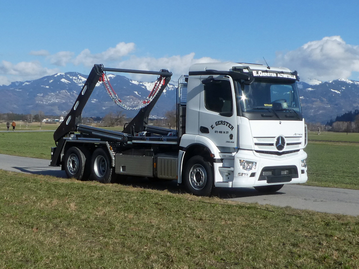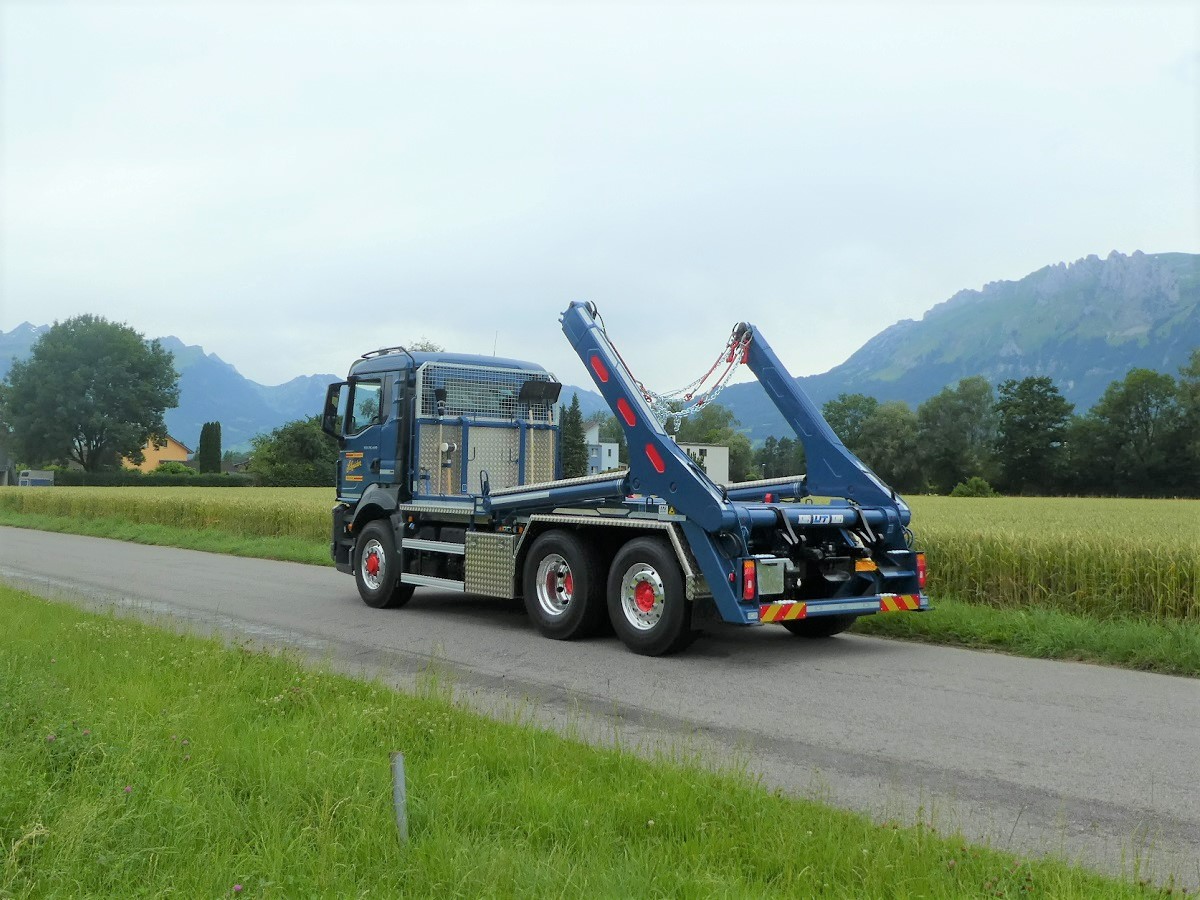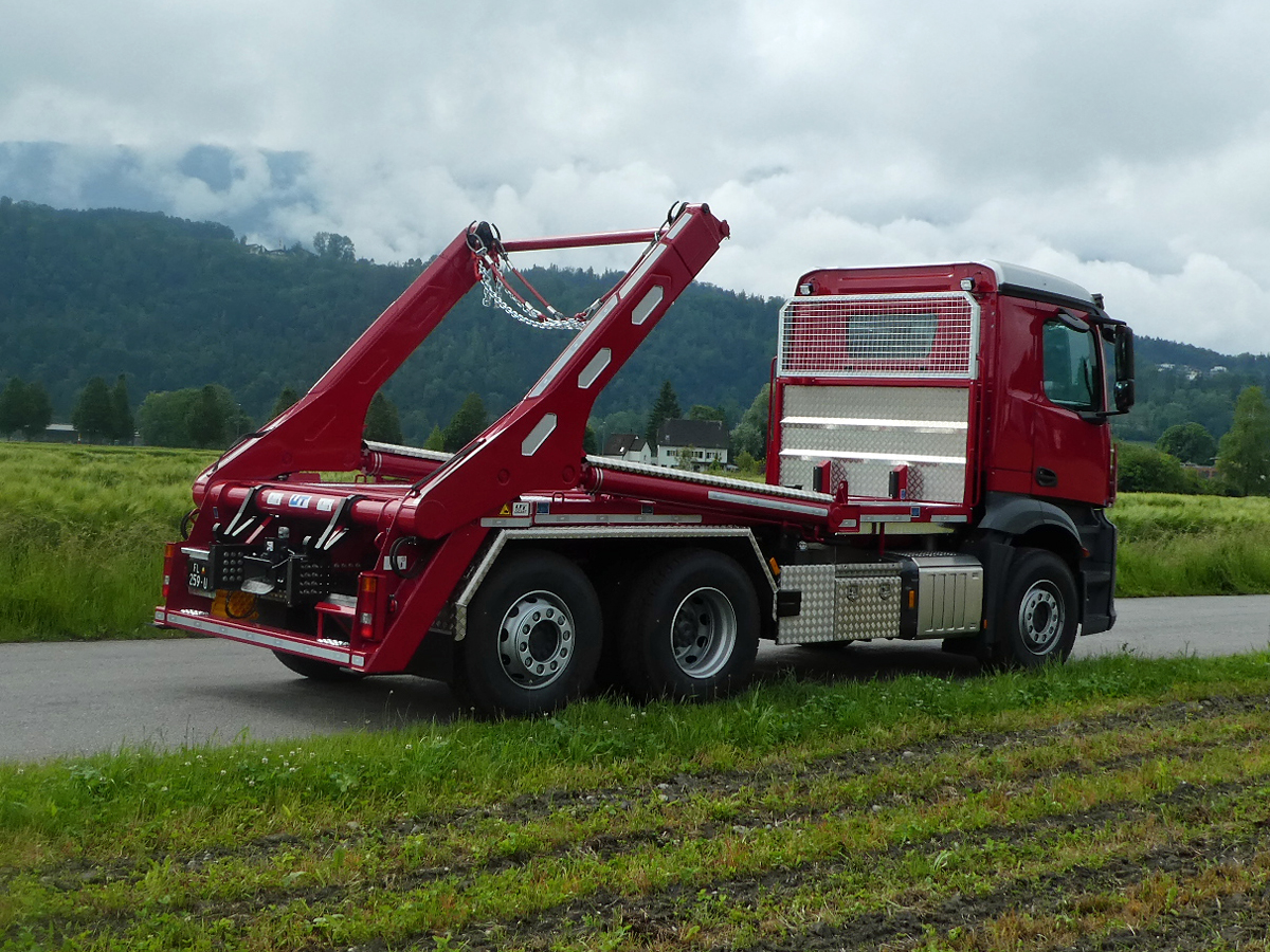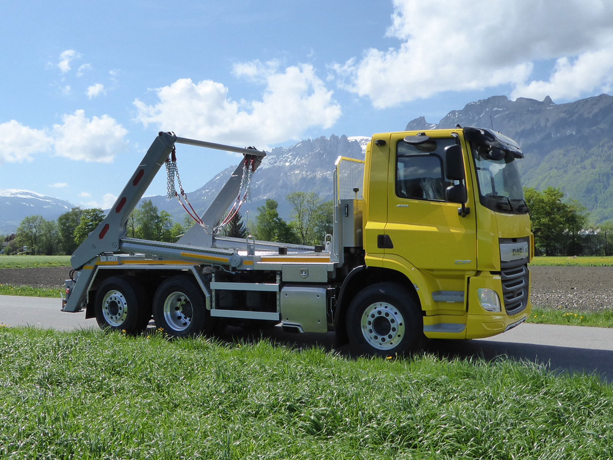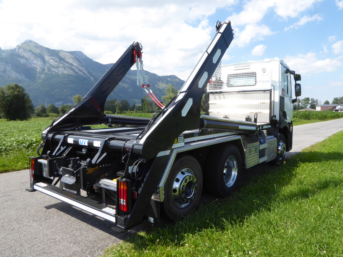 Der Starke: Teleskop-Absetzkipper GIGANT 260T ist für dreiachsige Lastwagen konzipiert. Schwer beladene Mulden und Container gelangen mit diesem Modell sicher und komfortabel an ihr Ziel.