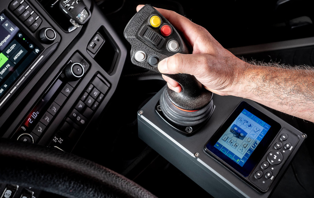 Alles im Griff: Mit der CAN-Bus-Steuerung haben Ihre Mitarbeiter ein effizientes Aufladen, Kippen und Absetzen selbst in der Hand. Die Bedienung unserer Eigenentwicklung ist einfach und selbsterklärend – Einarbeitungszeit und potenzielle Fehlerquellen sind auf ein Minimum reduziert. So macht Bedienen richtig Spass – das bestätigen auch unsere Kunden.