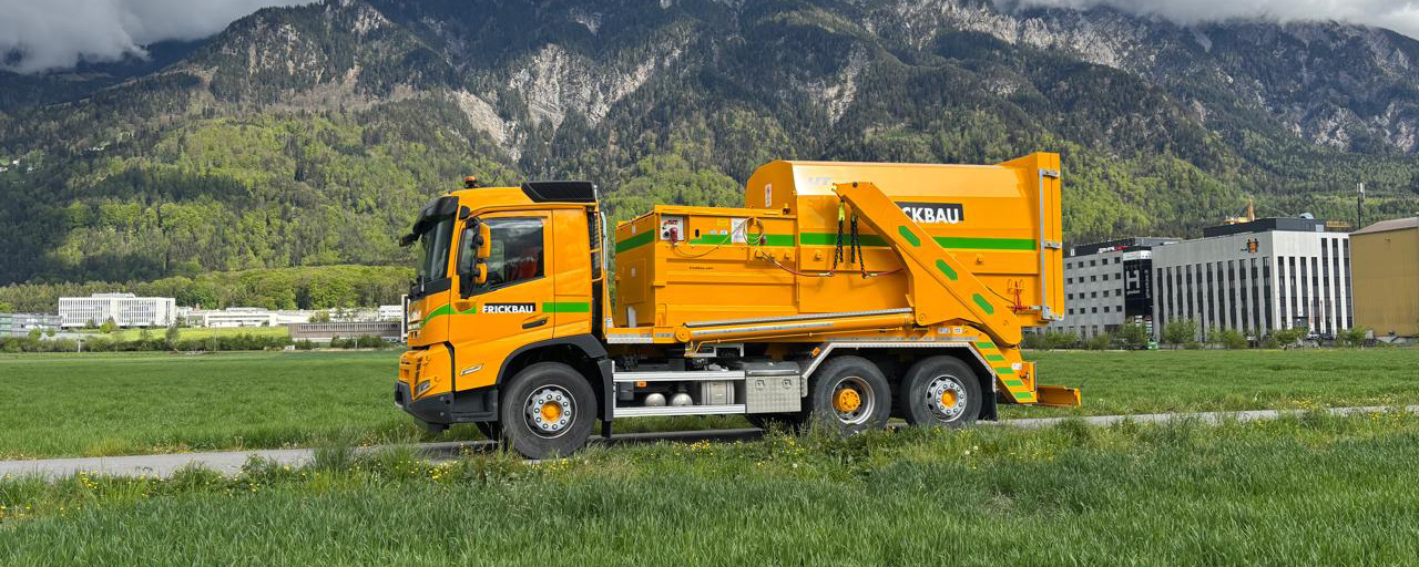 Die Frickbau AG in Schaan hat Anfang des Jahres Verstärkung bekommen: Ein GIGANT 32T Comfort Absetzkipperaufgebaut auf einem Volvo FMX 6×2 420 – zusammen mit einem Presscontainer des Modells PC 600K-14 AK. Ein echtes Power-Duo für die anspruchsvollen Bauprojekte der Frickbau AG!