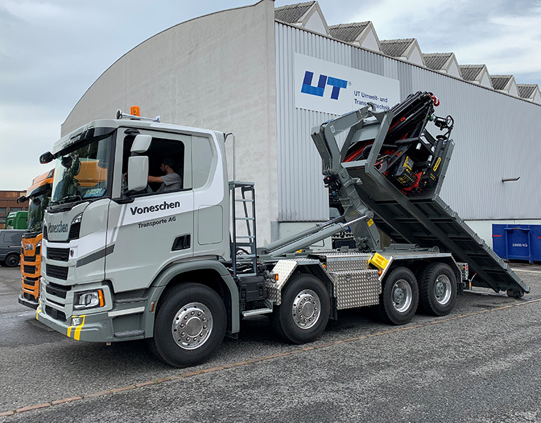 UT-Made für Voneschen Transporte AG Rothenbrunnen: Haken-Abrollkipper SAURIER 26TR60 Avanti
